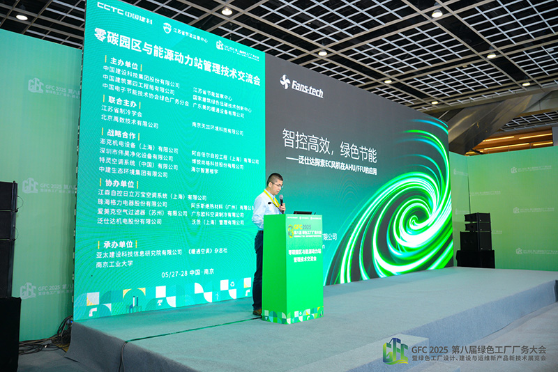 5月28日,在零碳園區(qū)與能源動(dòng)力站管理技術(shù)交流會(huì)上,泛仕達(dá)技術(shù)支持經(jīng)理彭利波發(fā)表了《智控高效,綠色節(jié)能,泛仕達(dá)探索EC風(fēng)機(jī)在AHU/FFU的應(yīng)用》的主題演講。